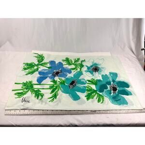 VTG 7 pc Soft Blue Floral - Bath Hand Towels Tablecloth Linen Retro Home Decor