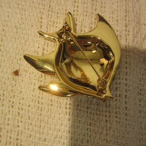 VTG 70'S BEAUTIFUL LARGE GOLDTONE FISH PIN W/MULTICOLOR RHINESTONES
