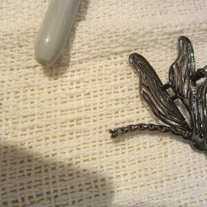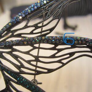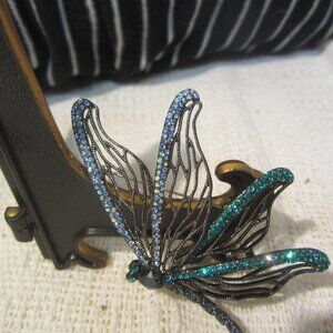 VTG 70'S LARGE DRAGONFLY BROOCH, BLACK METAL W/RHINESTONES