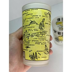 VTG 70’s 3PC HAZEL ATLAS Yellow Souvenir Tumblers Glasses, H3”XW2.5” AR, TN & NC.