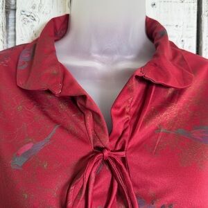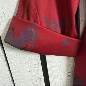Vintage 70s 80s Caribou Peasant Top Women’s Medium Maroon Birds Butterflies Boho