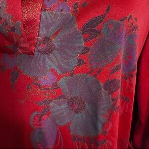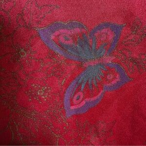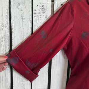 maroon boho, floral print, fairycore, cottagecore, 3/4 sleeve, relaxed fit, vintage bohemian, festival ready, butterfly pattern, bird motif