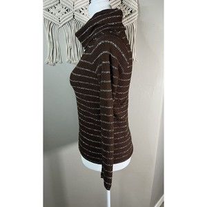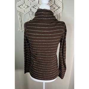 VTG 70s 80s Keneth Knits Sz Small Brown Silver Long Sleeve Cowl Neck Sweater