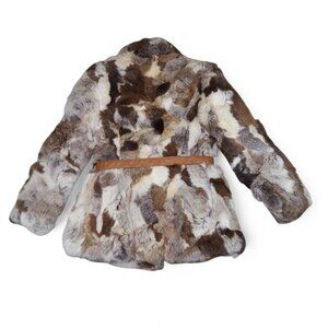 Brand: VTG 70s 80s Made in Hong Kong Patchwork Rabbit Fur Belted Coat Jacket