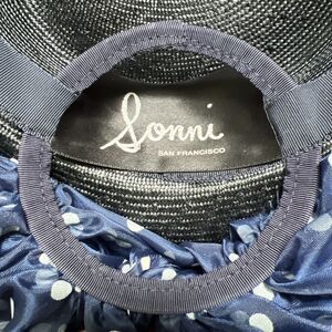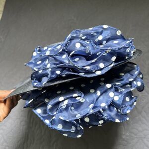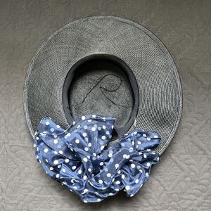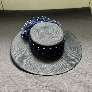 VTG 70s 80s Sonni San Francisco Hat Navy & Polka Taffeta Band Bow Kentucky Derby.