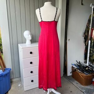 VTG 70s 80s Vanity Fair Red Lace Nylon Nightgown Sheer Maxi Slip Sz S USA