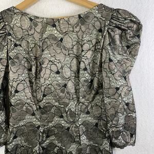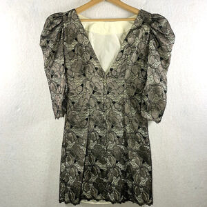VTG 70s 80s Womens Lace Cocktail Party Dress Open Back Metallic Glam Formal