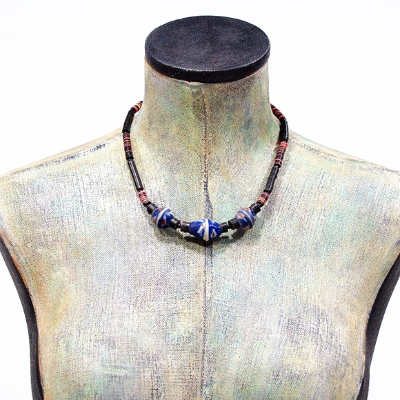 African sand cast and phono vulcanite vinyl bead tribal necklace
