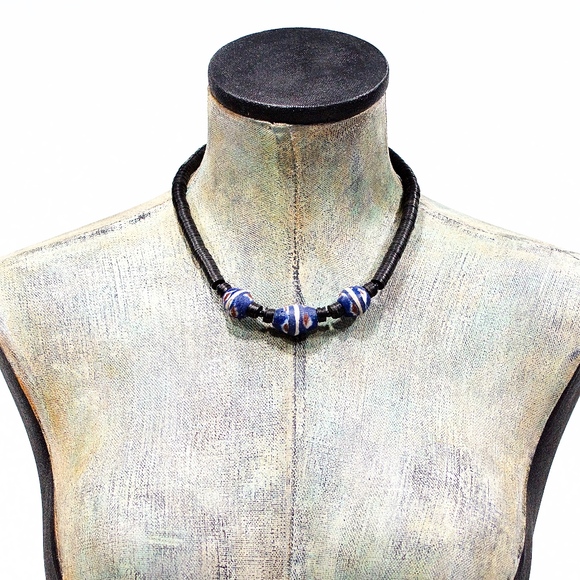 African sand cast and phono vulcanite vinyl bead tribal necklace