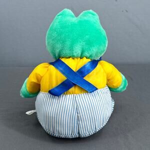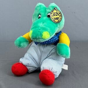 retro plush toy, vintage-inspired stuffed animal, collectible plush, plush alligator, crocodile toy, 90s plush style, nursery décor, kids room display, whimsical character toy, nostalgic plush, colorful stuffed animal, bow tie plush, cute gift for collectors, cheerful plush décor, Americana style plush, plush in overalls, vintage 70s, zoo animal, polka dot bow tie, striped overalls, giftmas, Kitschy, teacher, classroom decor, storytime play,