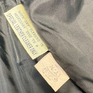 This vintage 70's Bermans black leather motorcycle jacket for women in size 40L exudes a timeless style with a nod to the 80s. The softshell leather outer material combined with a nylon lining provides durability and comfort, making it perfect for travel, parties, or casual wear during the winter, fall, or spring seasons. Featuring a classic zip closure and pockets for added convenience, this short-length jacket with long sleeves is a must-have for any fashion-forward woman looking to channel her inner biker chic.