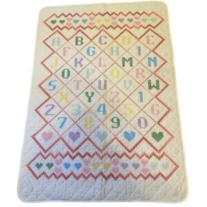 VTG 70s Cross-Stick Baby Quilt Toddler Crib Educational Nursery Blanket 29x40”