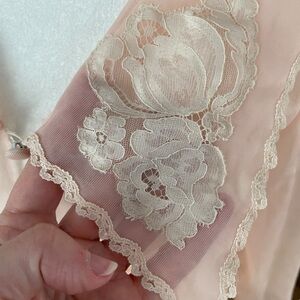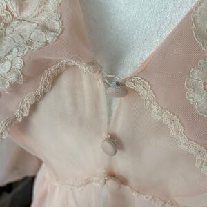 VTG 70s Elegant Peach Nightgown Robe Lace Collar Sz S
