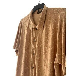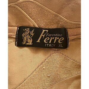 Vintage 70s men's Farentino Ferre casual button up shirt. Shirt is gold and done in a textured geometric pattern. It's made of a poly spandex blend and is a man's size XL. Being vintage it may run small so please check measurements. Made in Italy. This shirt is one of a kind. Roll into a club, go on a trip, wear it anywhere and turn heads!