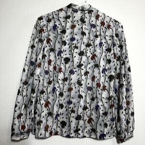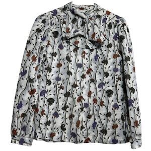 VTG 70s Fire Islander Pussybow Pussycat Bow Blouse Floral Print Button Down 12
