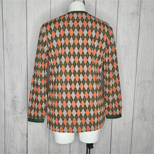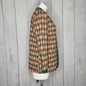VTG 70s Groovy Green/Orange/Gray Argyle Top & Matching Cardigan