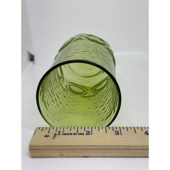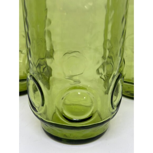 vintage green glasses, embossed glass tumblers, retro drinkware, mid-century modern glasses, green barware, textured glass cups, 6 inch glass tumblers, green glassware set, collectible drinking glasses, decorative vintage cups