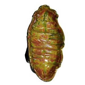 VTG 70s High Heel Boot Planter VASE Green/Gold Luster Ceramic Victorian Style