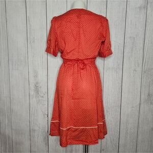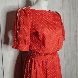 VTG 70s JCPenney Red & White Polka Dot Day Dress w Puff Sleeves