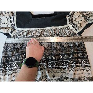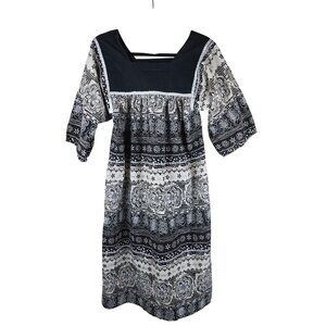 Lightweight and breathable material with a classic boho floral design. Features a flattering square neckline and 3/4 sleeves for versatile wear.
