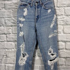 VTG 70’s Levi’s White Tag Distressed Light Wash Straight Leg Jeans 23”x 27”