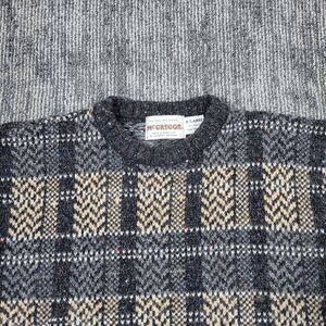 VTG 70s McGregor Geometric Plaid, Grandpa, Preppy, Wool Sweater *XL* Knit