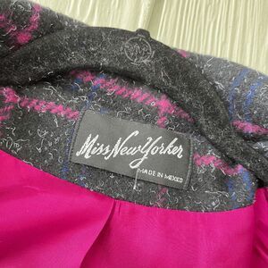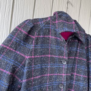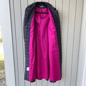VTG 70s Miss New Yorker Plaid Wool Blend Coat – Hot Pink Lining – S/M
