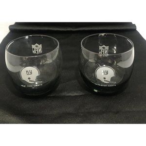 VTG 70’s NY Giants NFL Roly Poly Gray Smoke Fade Drink Bar Glasses SET 2 PC