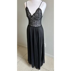VTG 70s Nightgown Black Lace Bodice Long Maxi Glam Whimsygoth Romantic Flowy USA
