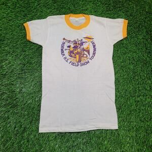 VTG 70s Norwalk HS Marching Band Ringer T-Shirt Mens XS Slim Long 18x28 DevKnit Paper Thin Made In USA Single Stitch 50/50 Blend Cotton Polyester Fits Long Tall M