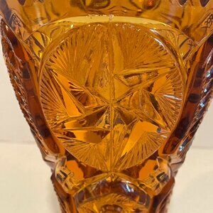 VTG 70s Ohio Star Amber Vase L E Smith Glass Heritage Line w Cadmium Glow Signed