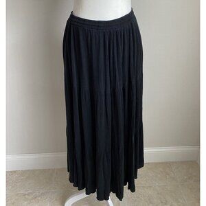 VTG 70s Painted Pony One Size Black Tiered Midi Skirt Elastic Waist Drawstring