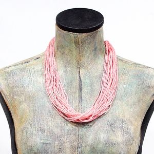 VTG 70's Pale Pink Multi Strand Beaded Necklace
