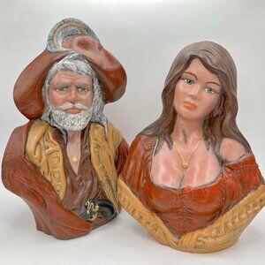 VTG 70s Pirate Gypsy Wench Ceramic Statue Figurine Bust Set Holland Mold 3D
