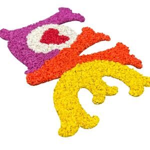 Vintage, 70s, melted plastic popcorn, LOVE sign, mod, retro, mid-century, pop art, Valentine’s Day, heart décor, bright colors, psychedelic, hippie, groovy, kitsch, collectible wall hanging, nostalgic, bold typography, pop culture, plastic art, playful home décor, wall accent, boho retro décor, flower power, funky 1970s, rainbow, rainbowcore, kids room,