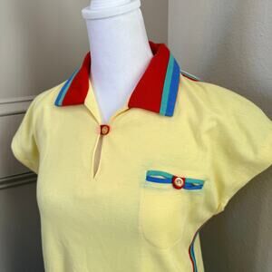 VTG 70s Queens Way to Fashion Polo Shirt Yellow Colorblock Women’s L Preppy