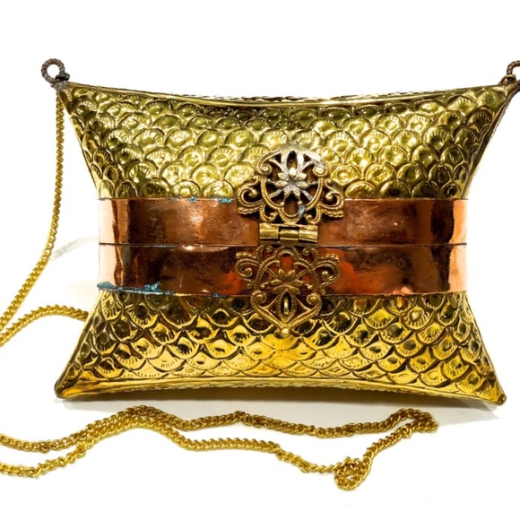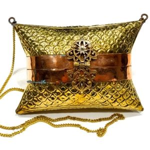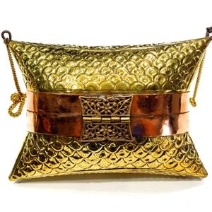 VTG 70's Rare Ornate Brass Copper Pillow Purse
