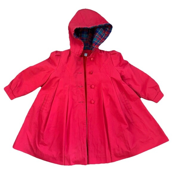 VTG 70s Rothschild Red Girls Coat (6X) Union Made ILGWU, Lined Hood Swing Coat