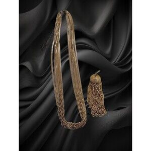 VTG 70's Sarah Coventry Multi Chain Tassel Necklace Removable Pendant Gold Tone