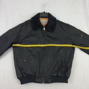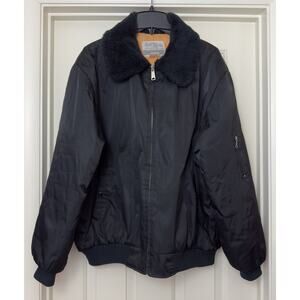 L Vintage Sears Work Outerwear Black Bomber Jacket Faux Fur Collar XL 46–48 Korea. Excellent Vintage Preowned Condition.