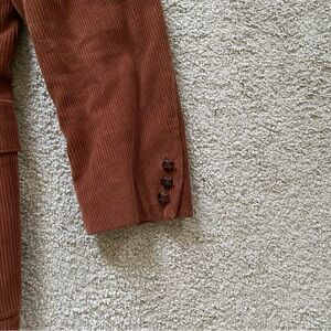 Features: This warm brown corduroy sportscoat has a notched collar, is long, and has extra buttons. It is a great vintage piece for a fall or holiday wardrobe.