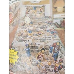 One set of vintage Superstar curtains sold at Sears featuring baseball, basketball, hockey.