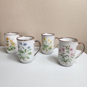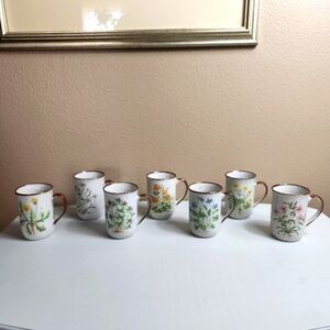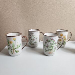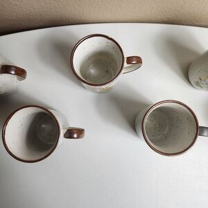 VTG 70s Takahashi (Set of 8) Speckled Stoneware Wildflower Designs Coffee Cups