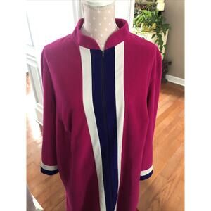 VTG 70's Vanity Fair Color Block Velour Zip Front Housecoat Hot Pink Purple XL