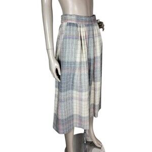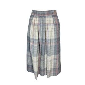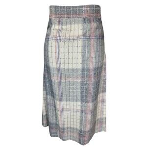 VTG 70s Wool Blend Grey Pink Plaid Tweed Midi Secretary Academia Librarian Skirt