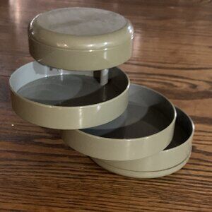 Vintage 1970s interDesign Swivel Desk Jewelry Organizer Chartreuse green Modernist Plastic with lid