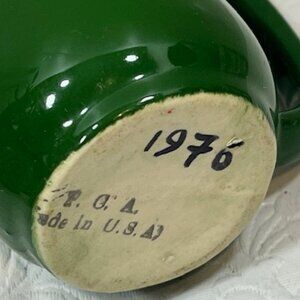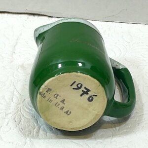 VTG '76 Mini Small Tennessee Green Ceramic Pottery Creamer w/White Drip Glaze 3"
