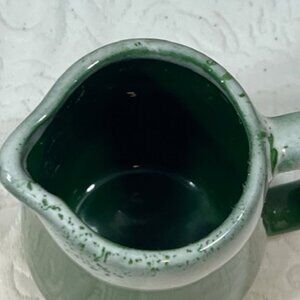 Vintage Small Ceramic Pottery Creamer Green w/White Drip Glaze on top