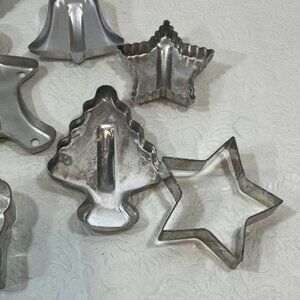 VTG 8 Various Biscuit Cookie Cutters Metal Gingerbread Man Stars Bell Tree Boot