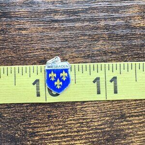 VTG 800 Silver Wiesbaden Blue White Yellow Enamel Shield Charm Size 0.75" Length